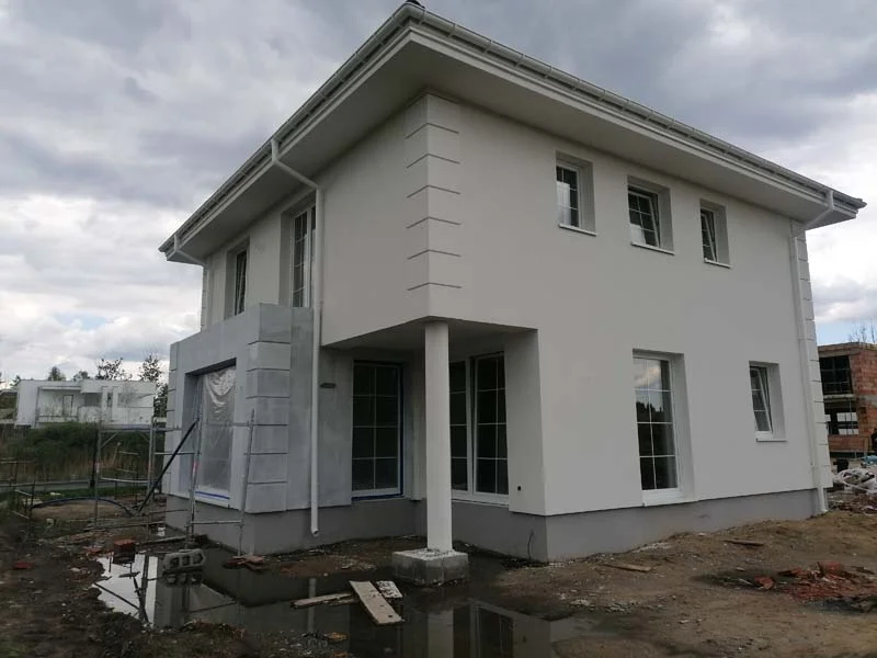 Okna TISSER OSMOSE od Vito Polska z białym szprosem międzyszybowy idealnie wkomponowały się w bardzo ładny projekt jednego z kilku identycznych budynków.